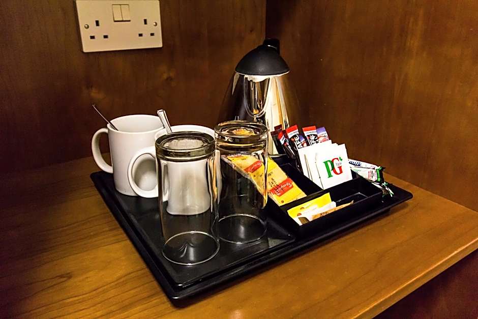 This room with attached bathroom features a comfortable seating area with Freeview TV, tea and coffee making facilities, and a telephone.
